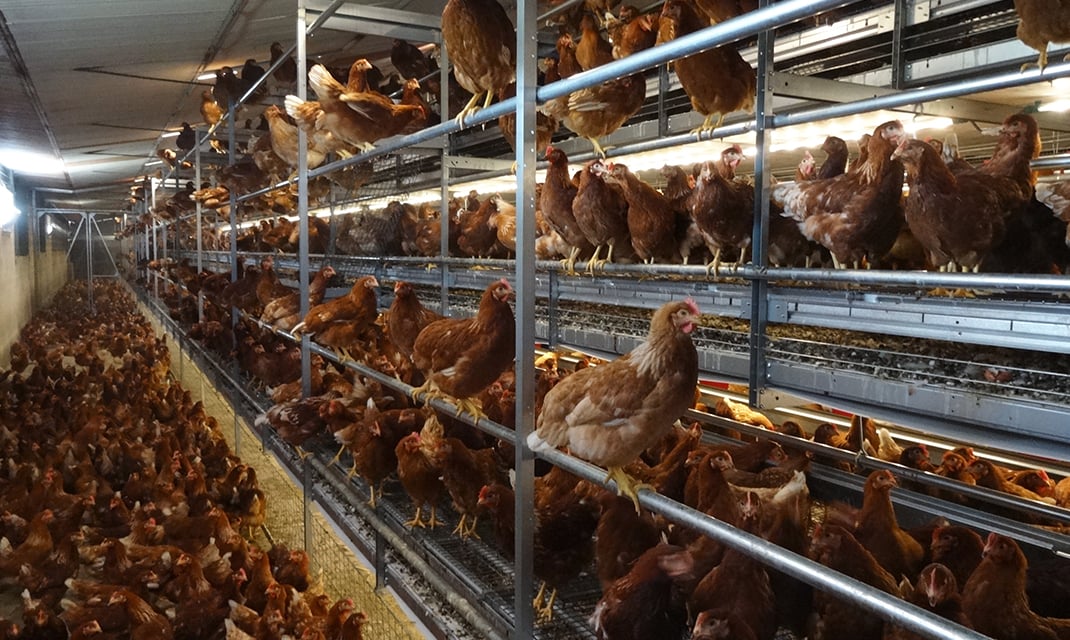 Le bâtiment de 1 682 m² de la Mef (108 m x 14,5m soit 1 566 m² pour la salle d’élevage plus 116 m² pour la salle technique) est en ventilation naturelle avec des volets et des lanterneaux auxquels s’ajoutent huit brasseurs d’air avec couronne de brumisation. La salle d’élevage est équipée de trois rangées de volière Bolegg Gallery Vencomatic à un étage, avec un seul niveau de pondoir à fond mobile (pour avoir accès à l’avant et à l’arrière du nid) et un seul tapis à fientes. « Nous avons gardé tous les éléments du système de la volière Bolegg Gallery classique, à un détail près, la largeur des rangées qui a été réduite à 2,60m (au lieu de 3,20m). Elle n’est pas très haute pour avoir une bonne visibilité de la salle d’élevage, une dimension à l’image que l’on a du bio. La mini volière a la particularité d’avoir un seul circuit de chaine d’alimentation par rangée et une ligne de pipette devant les nids » indique Johannes Oesterdiekhoff, Vencomatic Group.